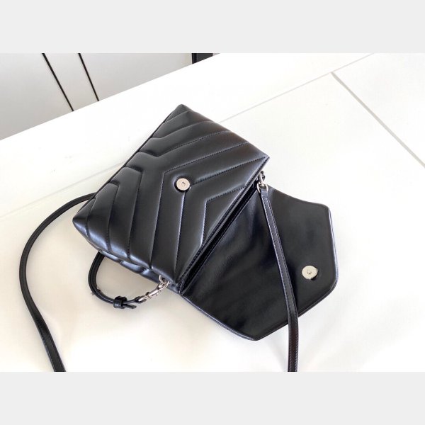 Replica Ysl Saint Laurent Loulou Bolsa de juguete en cuero negro Matelasse 467072.