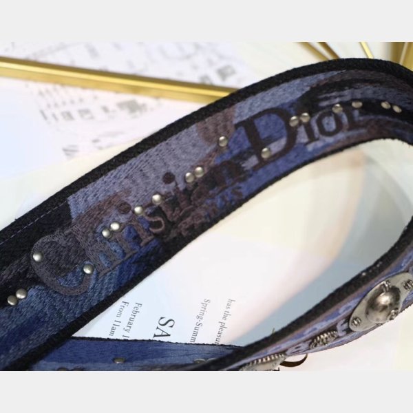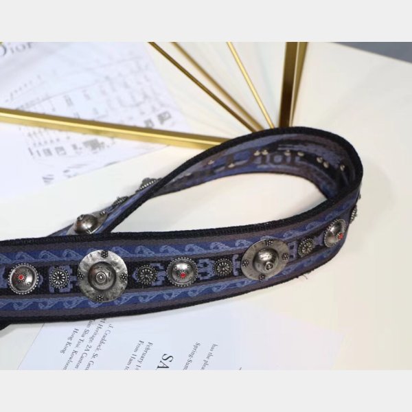 Esta correa elegante está hecha de lienzo que presenta emblemas de metal con tachuelas maravillosamente a través de la superficie y los broches de oro envejecidos. ¡Disfruta de la forma, la función y el estilo de esta correa única para el uso diario, de Christian Dior!