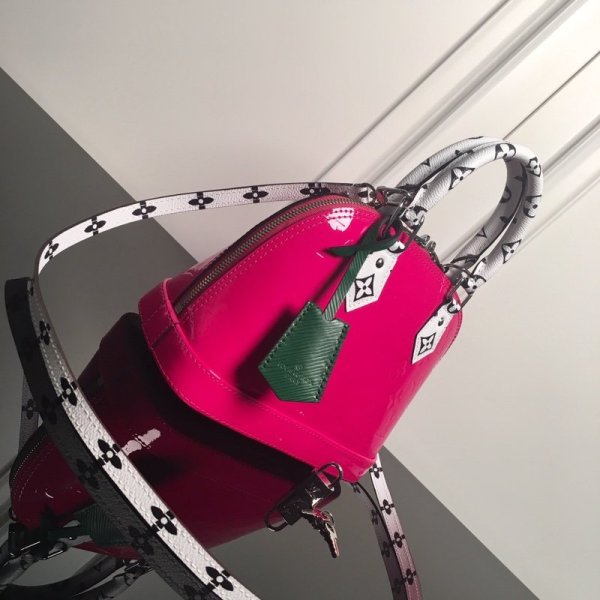 Louis Vuitton M90447 LV Alma BB bolsas Denim Raw Pink The Alma BB handbolsas in Monogram Vernis gets a Pop-inspired twist for Summer 2020