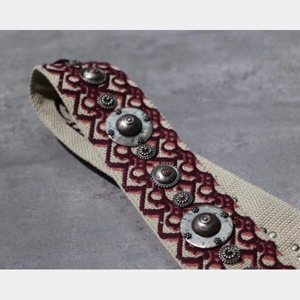 Esta correa elegante está hecha de lienzo que presenta emblemas de metal con tachuelas maravillosamente a través de la superficie y los broches de oro envejecidos. Enjoy the form, function and style of this unique strap for everyday use, from Christian Dior!