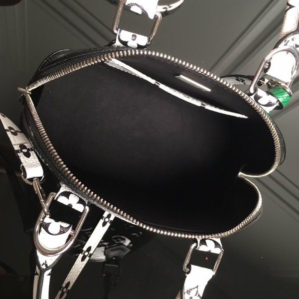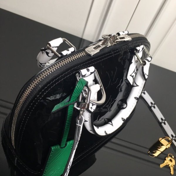 Louis Vuitton M90447 LV Alma BB bolsas Denim Raw Black The Alma BB handbolsas in Monogram Vernis gets a Pop-inspired twist for Summer 2020