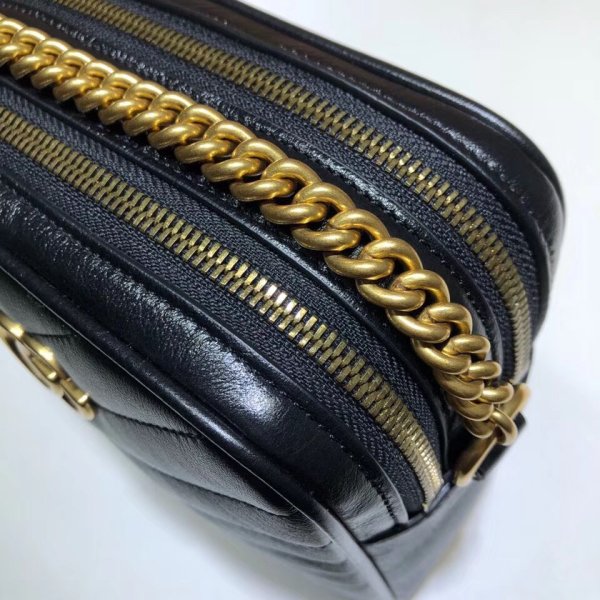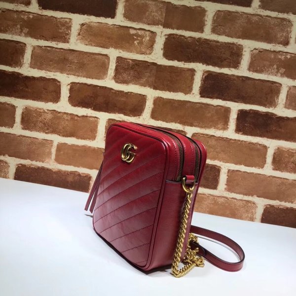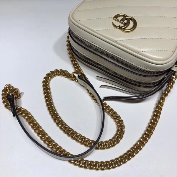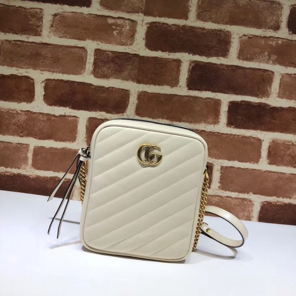 Hecho a mano de Matelassé Leather, la mini bolsa tiene un diseño vertical con un cierre de cremallera y ranuras para la tarjeta interior. Parte de la colección GG Marmont, la bolsa de correa de cadena se define por el emblemático hardware doble G: una versión contemporánea de una hebilla de cinturón de archivo de Gucci de los años 70 que se ha convertido en un sello distintivo de la casa. Back