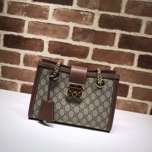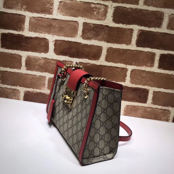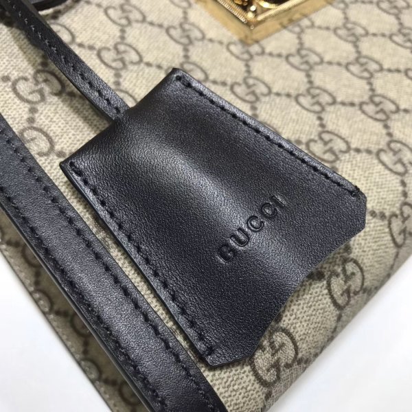a bolsas de hombro estructurado en lienzo Supreme GG con una correa que se asegura con un cierre de bloqueo clave que se extrae directamente de los archivos. La llave se coloca en una caja de llave de cuero desmontable.