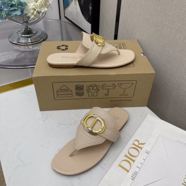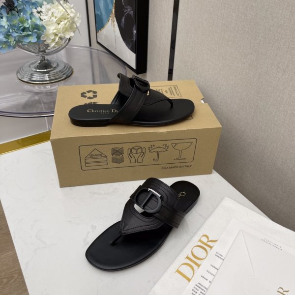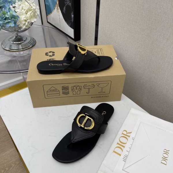 Dior Montaigne CD Letter Letter Sandalias de flip de hebilla de metal