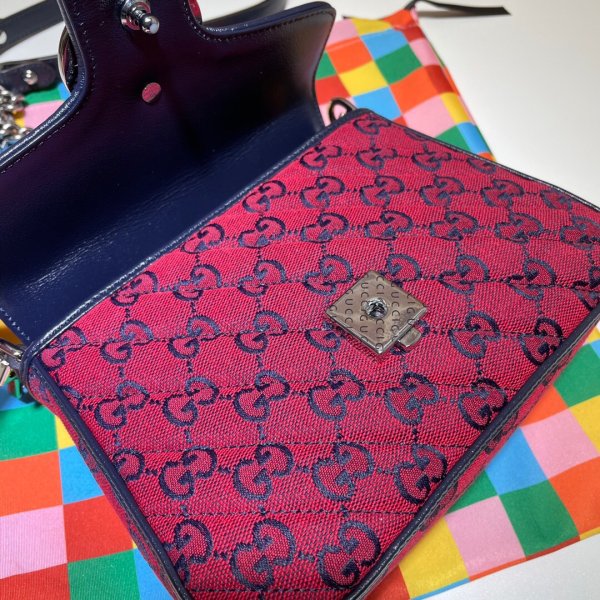 Pink and blue diagonal matelassé GG canvas