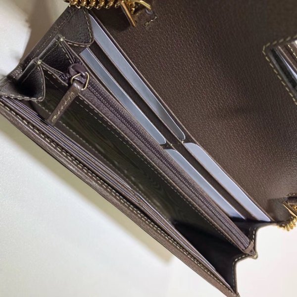 Una combinación clásica de los elementos más reconocibles de la casa, el motivo GG y la franja web, el mundo de los ofidios continúa evolucionando, incorporando nuevas formas y siluetas. La billetera tiene una construcción compartimentada y una correa de cadena extraíble que proporciona la funcionalidad dual de forma estructurada, lo que permite que se use como una mini bolsa.